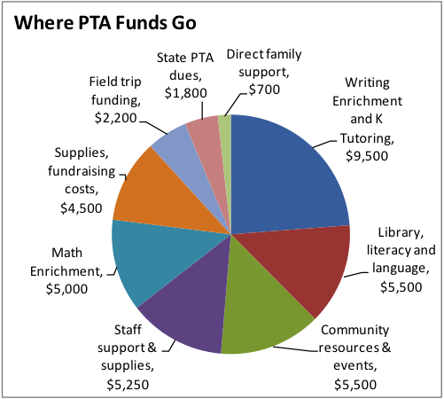 With your help the Annual Fund will build on the success of the PTA Walk-a-thon, the PTA Playground fund-drive, and the PTA Fall Stewardship Event, in order to support the PTA goals and fund PTA commitments, including providing student directories, field-trip subsidies, hosting all-school events, food assistance for needy families, and reimbursing teachers for personal expenditures on class-room supplies.
